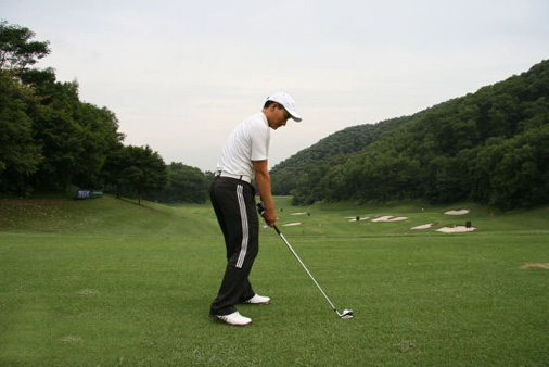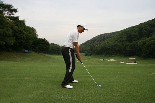 第四步:看一眼目标后挥杆击球。