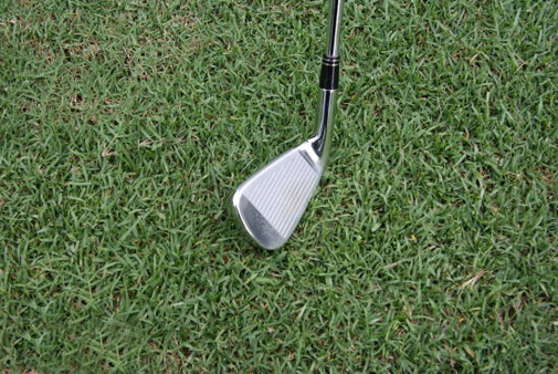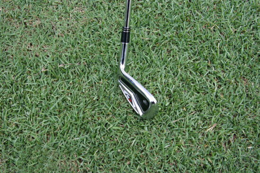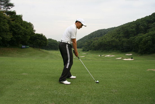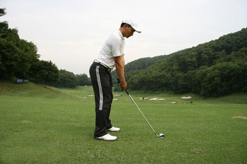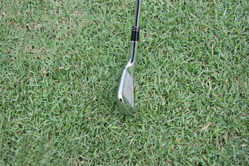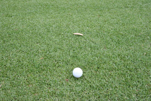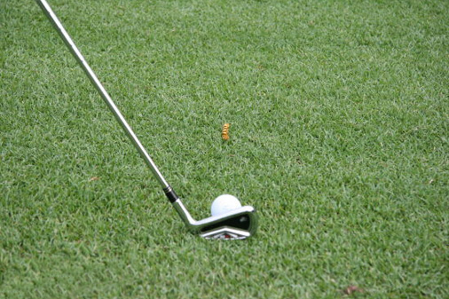 第一步:要先在球后看向目标方向,在球前五至十厘米处找一个明确的点,这个点可以是树叶,打痕,小石头。
