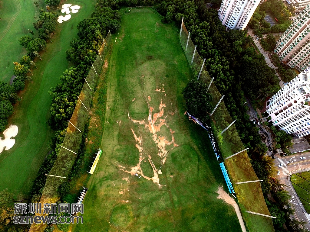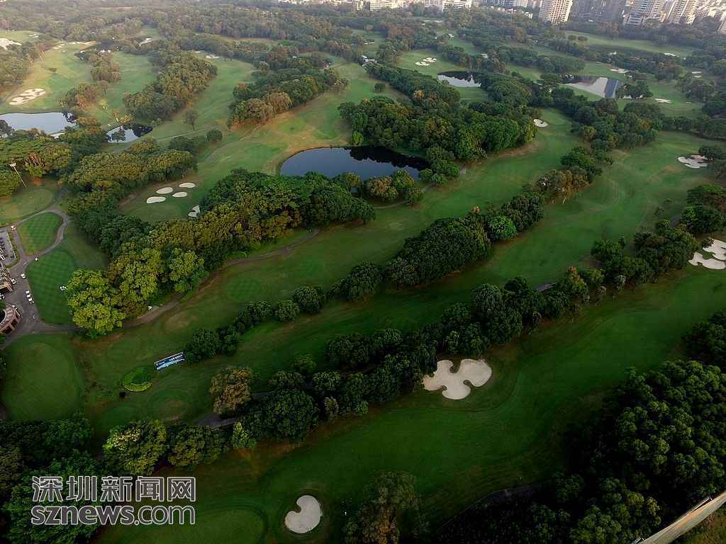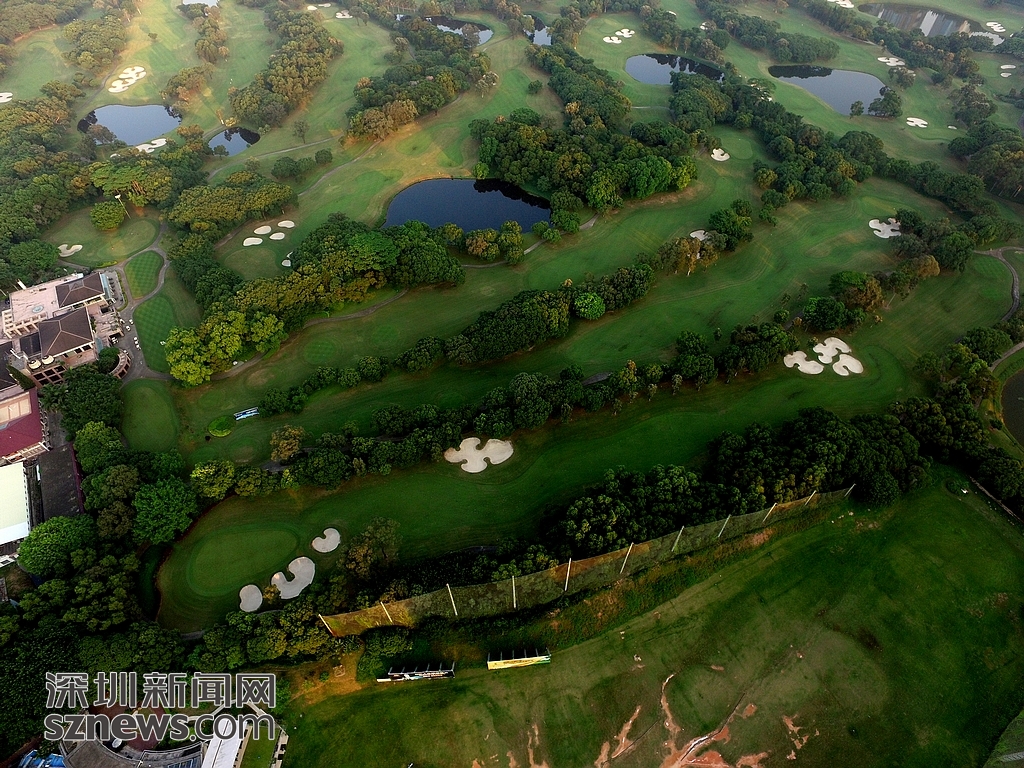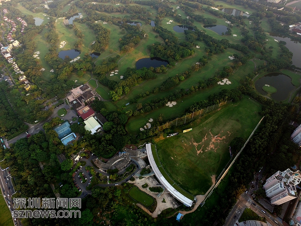 近日,记者用航拍机对深圳地理位置最好、占市中心城市面积最大的高尔夫球场进行航拍。