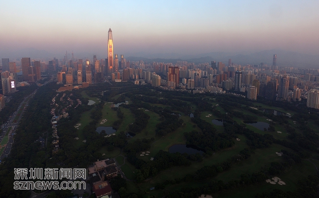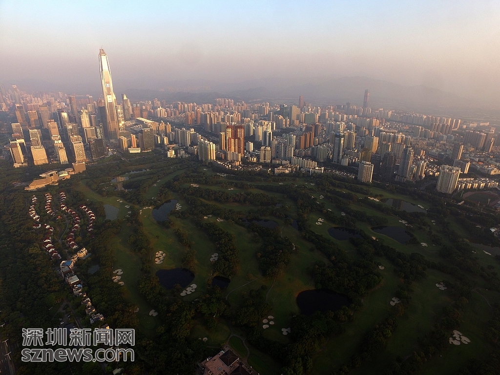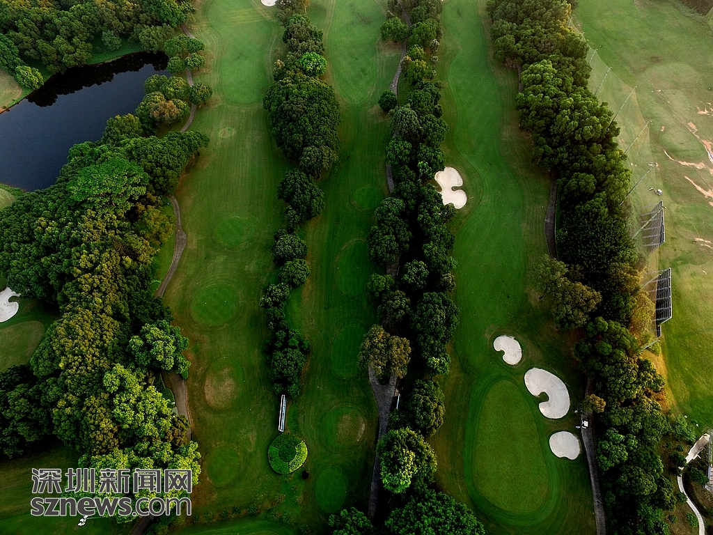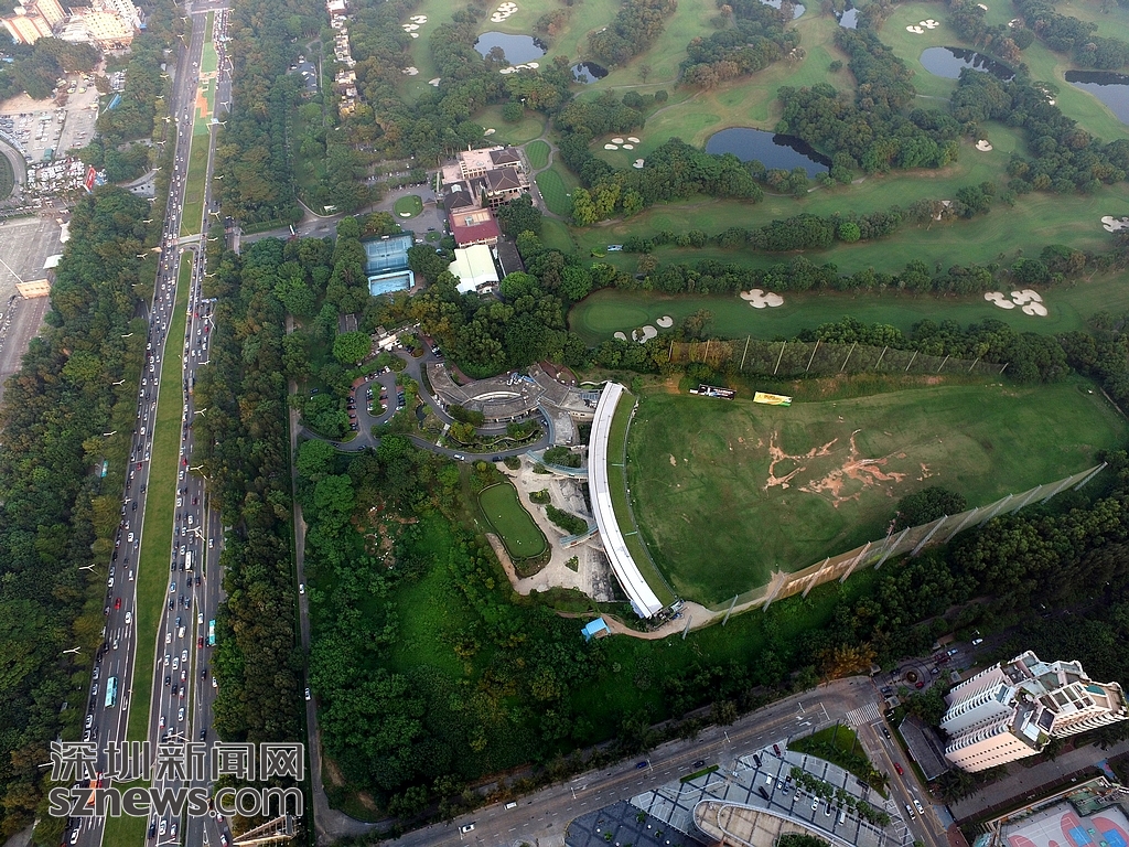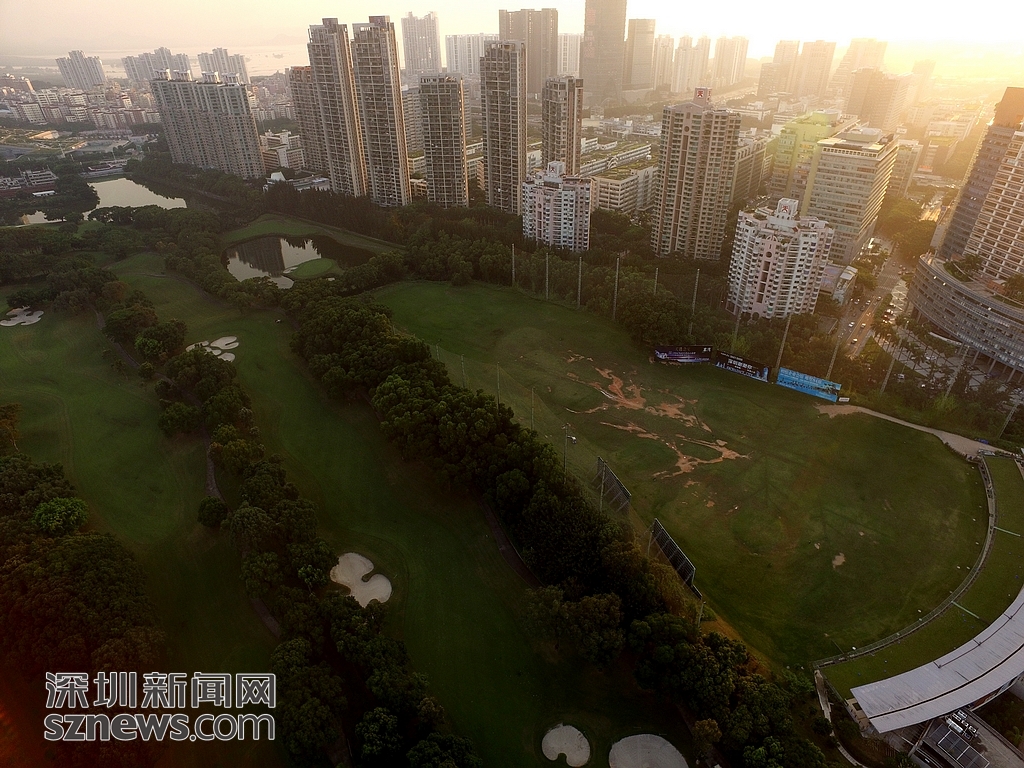 近日,记者用航拍机对深圳地理位置最好、占市中心城市面积最大的高尔夫球场进行航拍。