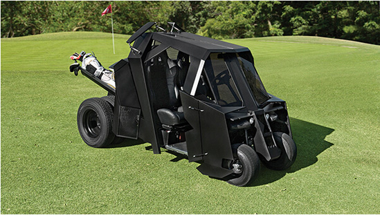 如果你要和自家小孩开这辆球车下场,记得事先一定要反复跟他强调《蝙蝠侠》是虚拟的。这辆球车,具有可调节的真皮座椅、一个iPad放置架和亮眼的前灯。除此之外,它还有一个全黑的合金框架、两个空气翼以及一个非常平稳的后悬架,足够放下四套球包!不过这辆球车也并非完美,对于哥潭市(蝙蝠侠所在的城市,罪恶到处滋生)的罪犯来说,它还是有点太慢了。