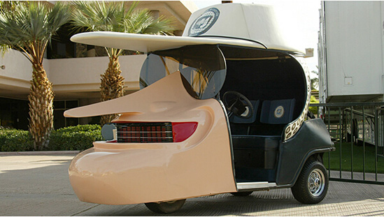 Pennwick依据空气动力学进行的流线型设计以及法拉利式的光滑表面让这款车极富运动感。和该品牌的其他高尔夫球车一样,这辆车同样具有一些可以定制的选项:比如燃气动力底盘、真皮座椅、车顶和最重要的球包固定装置。当然了,你还可以定制一个立体音响,让你在球场边也能享受真正的低音。至于这款车唯一的缺点?该车最高时速只有20英里,这可不是法拉利的风格....