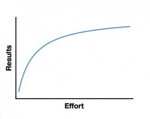 向世界级的运动员请教经验的时候,我常常看到“成就内驱力”被过度的提及和误导。一些运动员相信主要只要做出巨大的改变通常会收获一个满意的结果。改变是积极的、是进步的,但是我可以告诉你,改变有可能会过了头。 有时你会因此强迫自己追求完美,从而绩效下滑、甚至觉得沮丧。你可能熟悉经济收益递减规律的原则。他基本强调一个针对某一目标的持续努力的行为在特定时间点以后效能下降的现象。很简单,如果你在某些事情上达到一定级别时,就会出现一个问题,就是追求完美的努力不再产生和时间投入相等的回报。