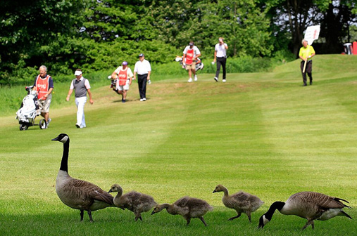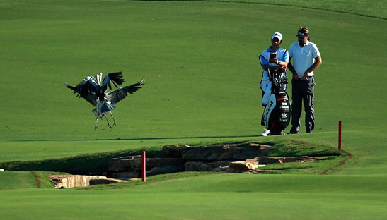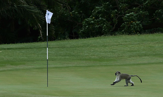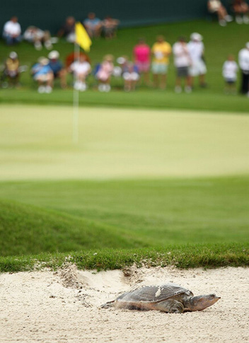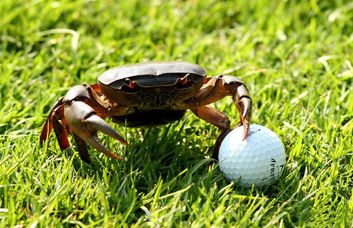高尔夫球员在ON上果岭前,要面对狭窄的球道,棘手的沙坑,甚至有的时候还有短吻鳄,对,你没听错,是短吻鳄!!各种形状和体态的动物都可能去球场上转一转,也经常让球员的比赛暂停。下面来看一下球场上因这些动物而形成的搞怪时刻!