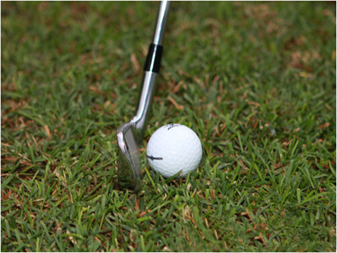 其次需要注意的是将球放在比较靠近右脚的位置,这样的球位会帮助球杆以更小的杆面角度击球来获得更低的弹道。