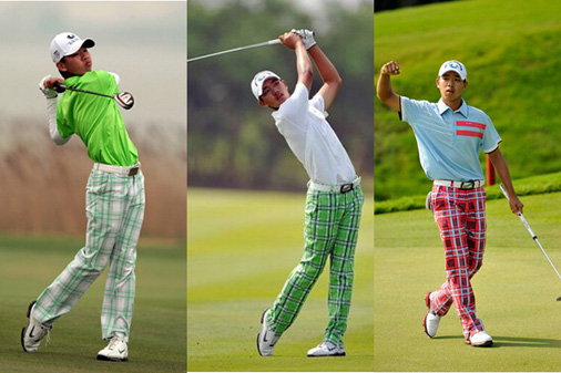 “中国小老虎’”关天朗,仅受泰格•伍兹亲自教球,更是穿着各种鲜艳的球服,在球场上玩起了色彩。