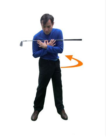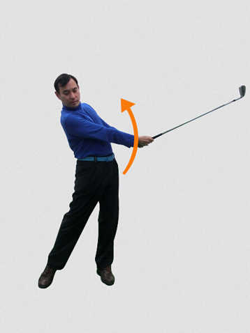 大多数人在早期学打高尔夫时,教得是上挥杆过程中要保持下半身稳定。但是如果限制胯部的转动,那么双臂只能是向上动了;或者如果是水平方向转胯,没有侧向的转动动作,那么双臂也只能水平绕着身体走了。送杆也是同样的道理。