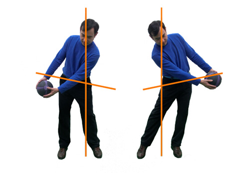 球手动作正确,上杆起始阶段要先有伸展,再是侧弯最后转动;下杆就是收缩,侧弯和转动。做一记小左曲球,胯部动作和打冰上曲棍球的动作类似,冰上曲棍球球手就会限制胯部转动保证直向罩球前行。做一记小右曲球,胯部动作和棒球击球类似。棒球击球会尽可能水平转动胯部,进而水平方向进行击球。