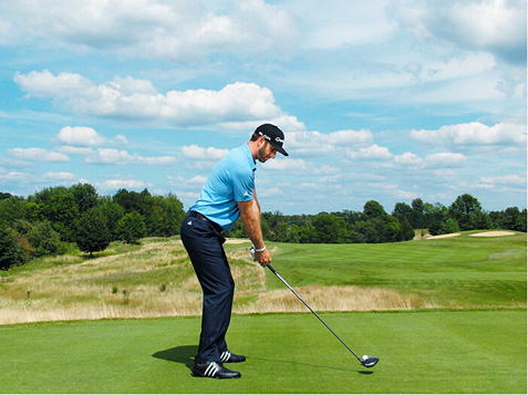 图1 达斯汀的“堆叠”体姿(双肩位于双膝上方、双膝位于双脚尖上方)为有力的起杆动作做准备