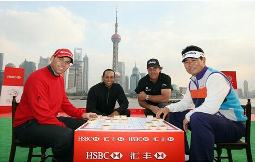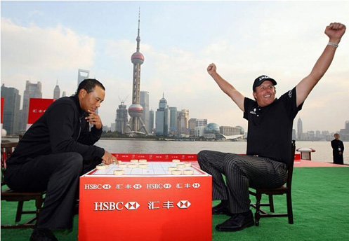 2009年,老虎、米克尔森、加西亚、梁容银在黄浦江码头边以下中国象棋的方式,欢庆汇丰冠军赛升级世锦赛。其中老虎老米对弈时前者沉思老米庆祝的经典一瞬,也预示了米克尔森二度夺冠老虎三度失利的结局。