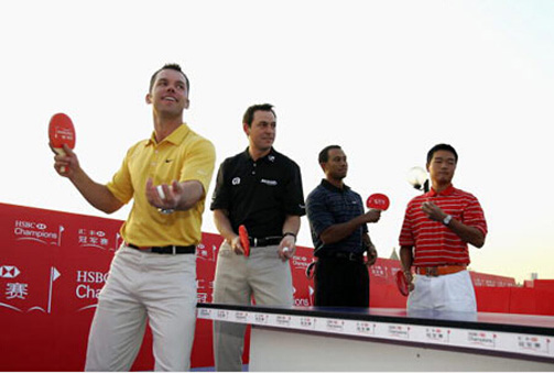2006年,伍兹、凯西、卫冕冠军豪威尔、以及中国小将胡牧在滨江公园进行了一次乒乓球“比赛”。后来这个创意被各种赛事大量模仿。