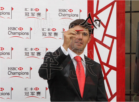 2008年,米克尔森、哈灵顿、伊梅尔曼三位大满贯冠军在上海环球金融中心大秀中国书法,分别用毛笔“临摹”了各自的名字。
