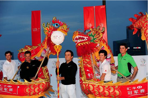 2011年,还是在外滩半岛酒店,舞剑换成了舞龙。卫冕冠军小莫里纳利意手举高尔夫状的绣球,麦克罗伊、布拉德利、维斯特伍德和斯科特分成两队,手舞长龙,“二龙戏珠”。可惜没了老虎和老米,那也是星味最淡的一届的汇丰冠军赛。