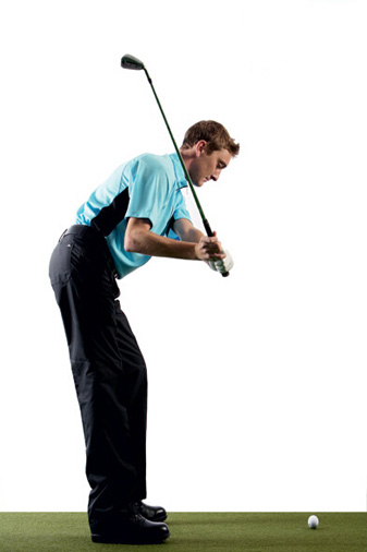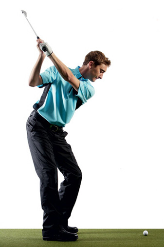 如果预备动作不正确,右曲球手常会过度转肩或后拉双臂,造成上杆过于向内,进而使杆面开放。