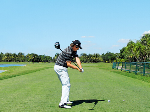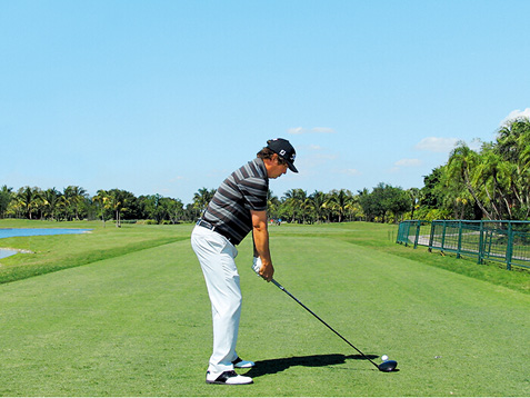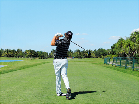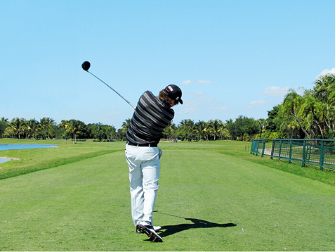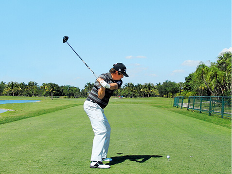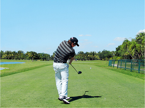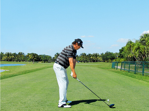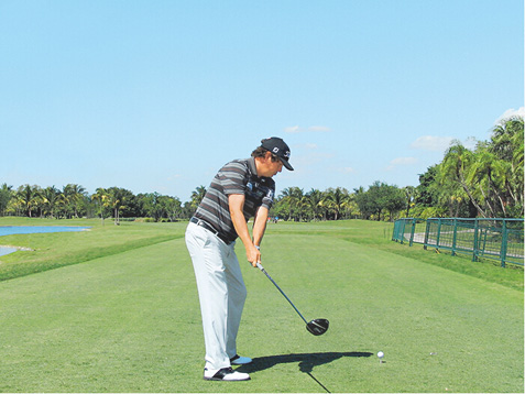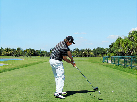 图1 杜夫纳摆动了一下杆头,以放松双腕,使得他可以更好地体会杆头的状态