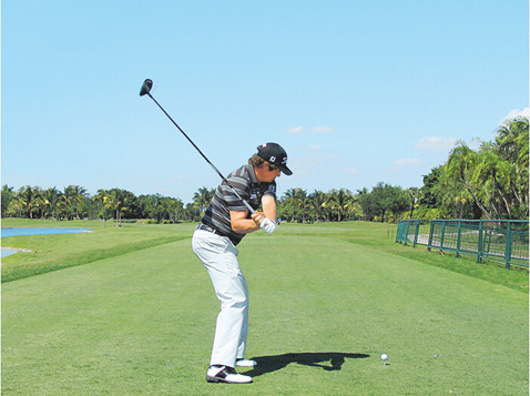 图2 上杆前半程的挥杆半径大、高度低,这是经典的霍根风格