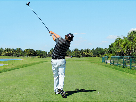 正如不计其数的前辈一样,简森 ·杜夫纳模仿的也是本·霍根的挥杆。霍根的动作并不适合大多数人,很多巡回赛球员都失败了,但这位2013年PGA锦标赛冠军却成功了。为什么?杜夫(简称)在雄鹰的传奇性挥杆中加入了个人特色,其中包括他那标志性的摆动杆头的动作。正如霍根一样,他也几乎完全依靠下肢来给球杆加速。他的上体仅仅是在随着下肢移动。除此之外,他的动作与大多数巡回赛球员并无二致。