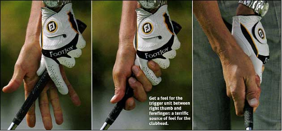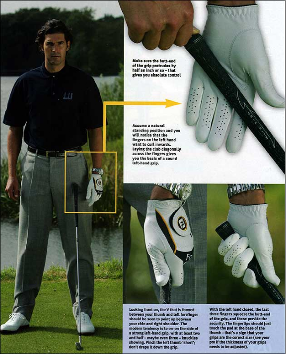 厄尼将肩膀与手腕的动作相结合——这种力量会被存储在下杆过程中,随后释放于手腕带动杆头击球的瞬间。如果你想效法厄尼,首先,你的握杆法必须允许你在挥杆过程中自由转动手腕,而左手握杆的方式极为关键。下面的技巧能帮助你矫正自己的握杆法。