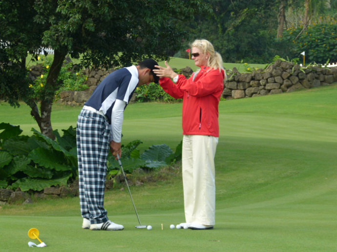 由于半挥杆动作需要很精细的控制,球打厚就没距离,打薄又会飞过果岭30码。即便有那么一次安全上果岭了,业余球手还会遇到第二大难题:长推不力。