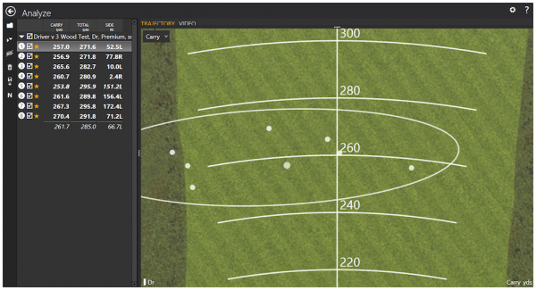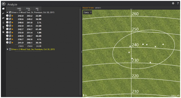 这名球手1号木偏右居多,3号木则各个方向上都有,但是总体的方向性比起1号木要好很多。
