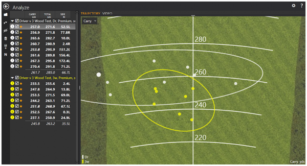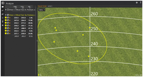 再后来,我决定用数据来证明这一切,我使用TrackMan4和练习场随机挑选的业余球手来做测试,让他们分别用3号木和1号木击球,下面就是数据: