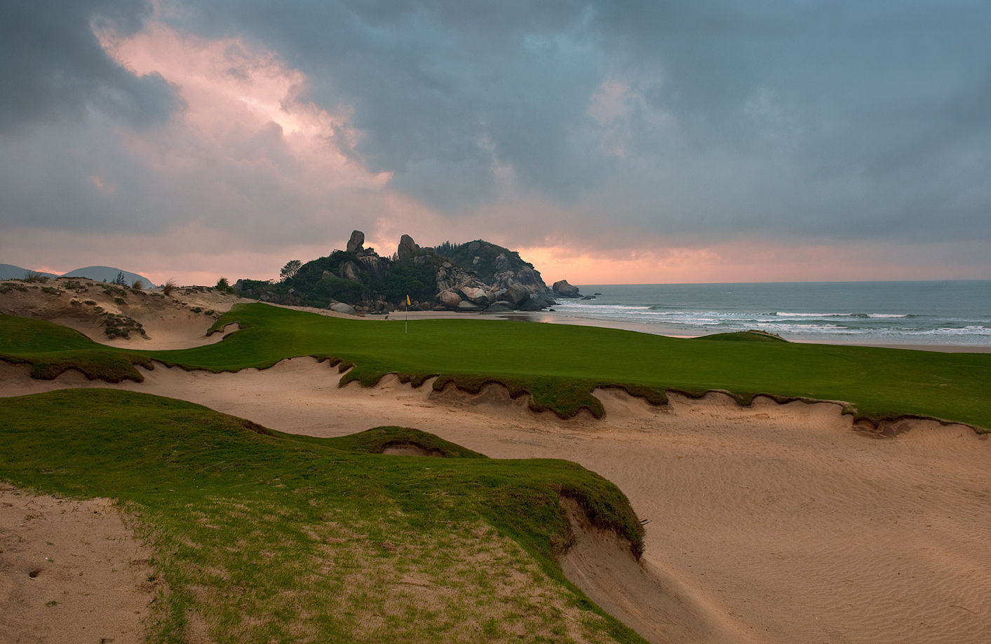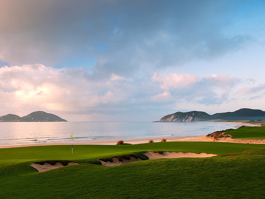 神州半岛如此典型的林克斯风格出自于非常著名的沙丘设计师汤姆·韦斯科夫(Tom Weiskopf),充分利用自然原貌设计出天堂般的高尔夫乐园。设计师也巧妙地利用当地地形地貌,提出41洞的设计理念。神州高尔夫球会由东场18洞、西场18洞和北边5个洞组成,其中还蕴含一个锦标赛球场,由东场13洞和西场5洞组成,北边也可以组成18个洞。高军说:“这种超前的设计理念让我们可以举办不同层级比赛的同时,不影响其他球员打球。”