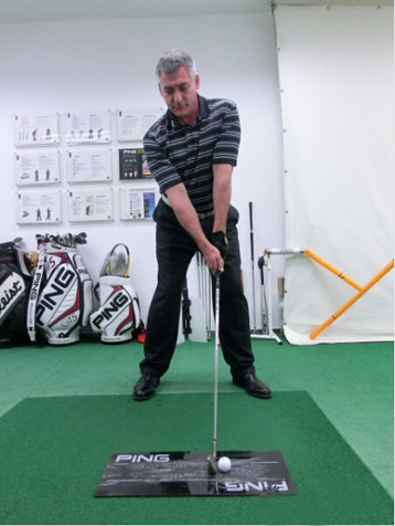 量身定做过程对着地角的测量中,往球手杆头底面贴一张“着地角胶条”。之后球手从“打击板”上打几个球。