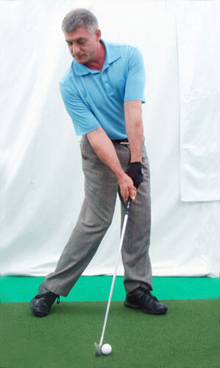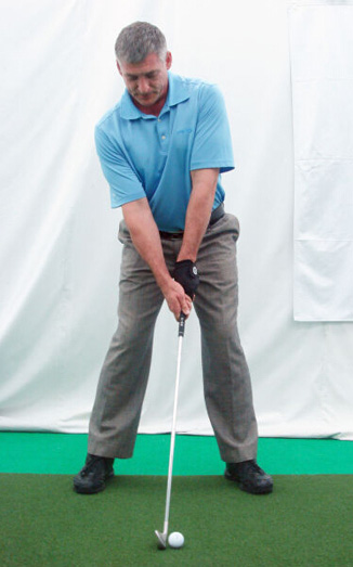 4. 正确的握杆力度——“牢稳”,不紧不松。用左手后三个手指和右手中间两个手指握住球杆。手腕应能够自由作出曲腕动作。预备动作时,前臂不应用力,否则会限制挥杆过程当中曲腕动作的自主灵活性。