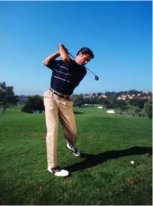 Tips:在挥杆过程中保持双眼盯着球,下巴指向球,不要过早地想看到球已经飞向哪里,送杆的时候才将头抬起,这就是经常听到的“死不抬头”。