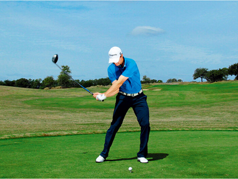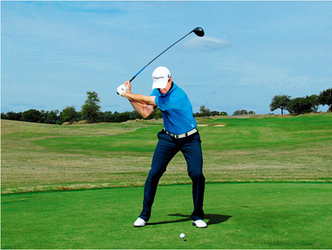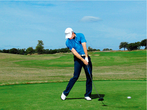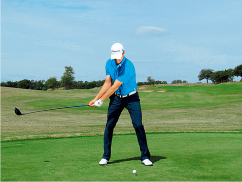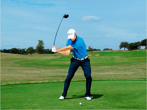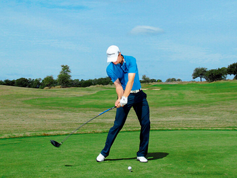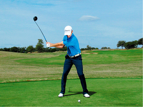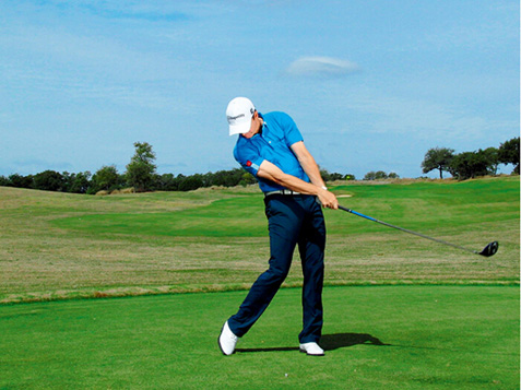 图11 经典的加速动作:在杆头进入触球区时,吉米的右肘紧贴右髋