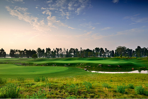 经过2014年沃尔沃中国公开赛的洗礼,正中更有国际范儿了。正中有两个18洞,分为A场和 B场。A场水多,但距离并不长,全长仅有7145码。但这并不意味着这座球场的难度会趋向简单。哈沃斯在设计球场时,充分考虑了面积巨大的龙湖,以及球场丰茂植被的走向。面对龙湖,哈沃斯更多是将湖水定义为景观,而即便水是作为障碍时也并不像其他球场水障碍那么恐怖和不讲理;而球场茂密的植被在哈沃斯的设计理念中,则充当了三个角色:一个是球道植被,一个是击球障碍,一个是引领球道延伸。可以说,哈沃斯在正中A场已把当地水和植物的灵性与作用发挥到了极致。