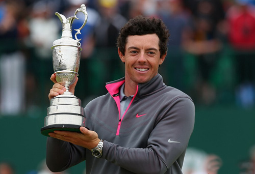 麦克罗伊捧起2014英国公开赛冠军奖杯