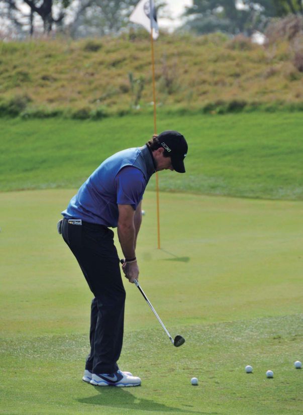 4、对于站姿,职业球手们有自己的习惯。一些球手更喜欢用方正的站姿,无论是发球杆还是挖起杆,都使用左脚向外张开的方正站姿,身体重心均匀分布。有些球员不喜欢身体重心从一只脚过渡到另一只脚,或者倾向于将重心落在脚根部或者脚趾部,在挥杆过程中,职业球员大部分追求的是身体的平衡感。