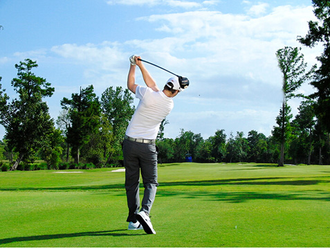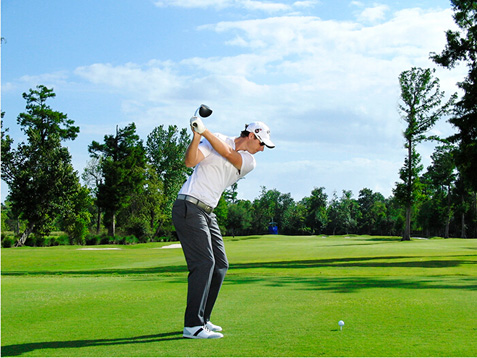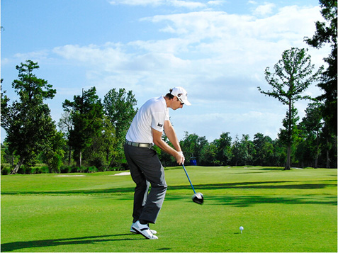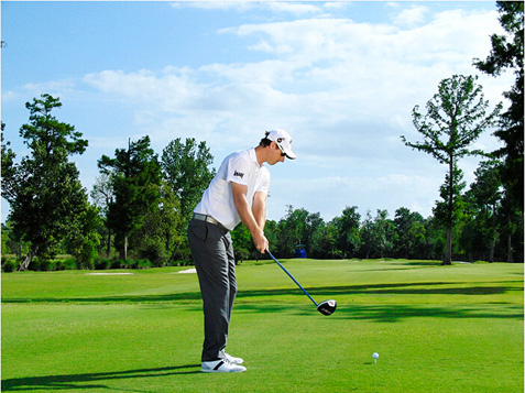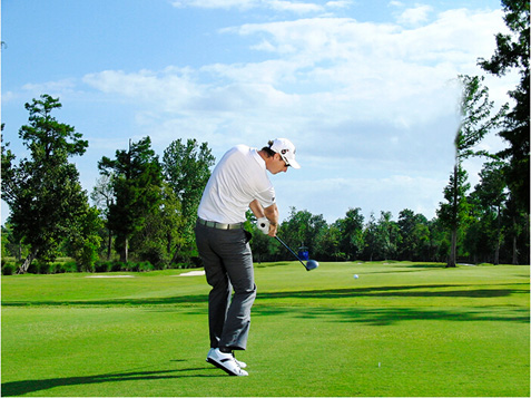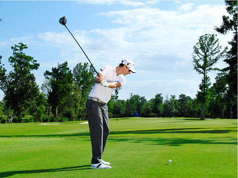考赛茨是典型的重视扭矩的球员。注意看图6,转肩与转髋幅度差额有多大。这种卷绕的力量正等待着向小白球释放出去。如果没有足够的柔韧性模仿该动作,不必沮丧。也许开球距离无法达到300码,但通过学习考赛茨的一些挥杆关键点上的动作,同样也能增加开球距离。