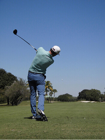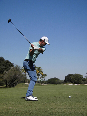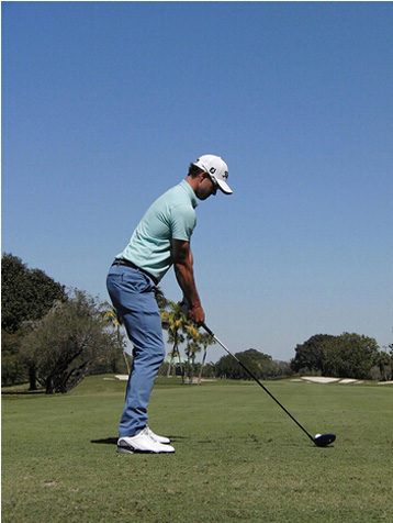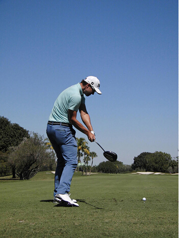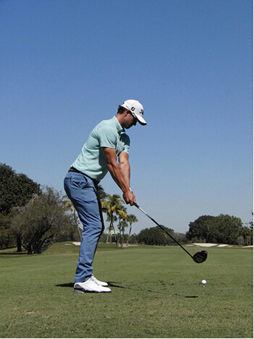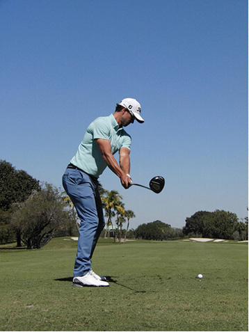 图8 我喜欢让启动下杆时的速度比较慢。如果我的髋部过早转动,站位就会闭合