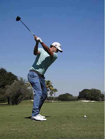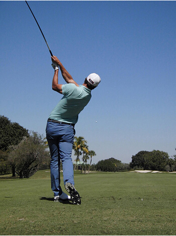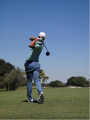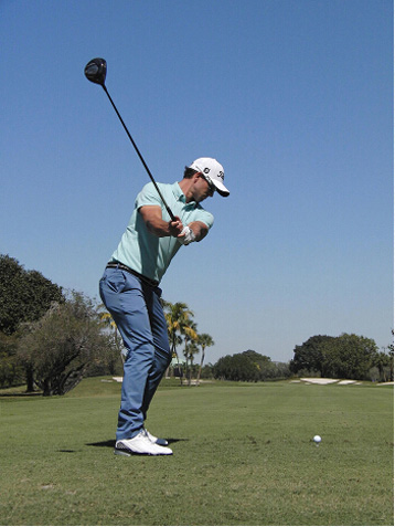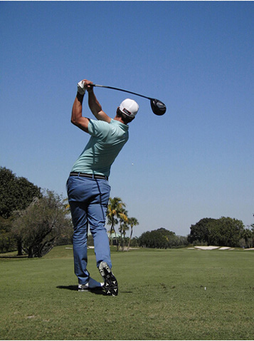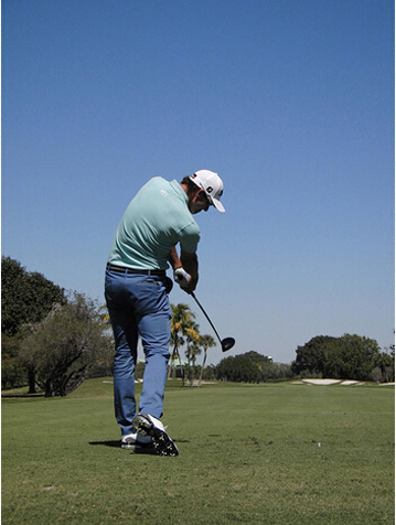 图15 结束挥杆时,左侧身体应该有强烈的伸展感