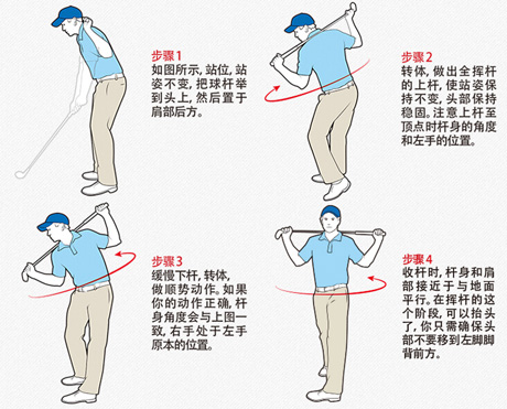 图5 我的挥杆焦点是以脊柱为轴转体,使站位时的站姿保持不变