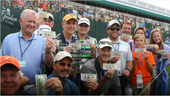 绿蔷薇精英赛第一轮,乔治-麦克尼尔(George McNeill)在老白TPC球场第18洞用9号铁打出一杆进洞,这意味着度假村的老板吉姆-贾斯提斯(Jim Justice)要兑现自己的承诺,给每个看到这个一杆进洞的球迷100美元现金(总共189名粉丝)。接着,贾斯汀-托马斯(Justin Thomas)也用9号铁打出了一杆进洞,这让吉姆-贾斯提斯不得不给当场的347名球迷,每人派500美元红包。下一个一杆进洞价值1000美元。不久之后,1700名粉丝便聚集在了18号洞。可是再也没有一杆进洞出现了。
