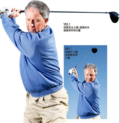 要明显增加挥杆力量,需要在挥杆时使手腕正确上翘。要做到这一点,可以按照这些步骤来做: