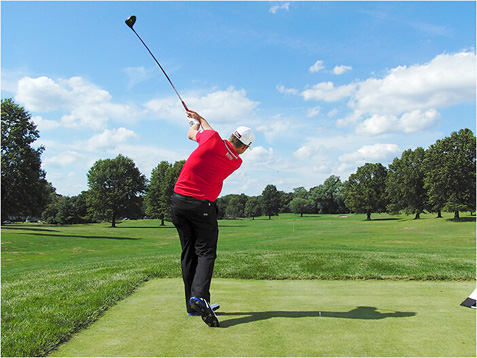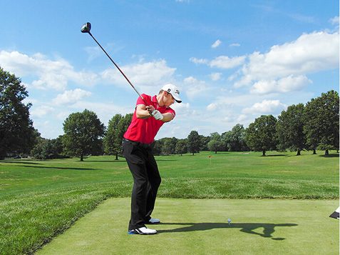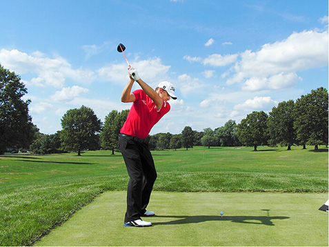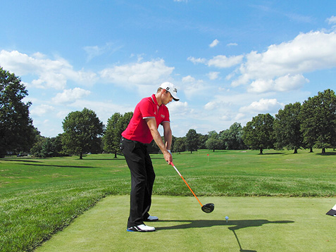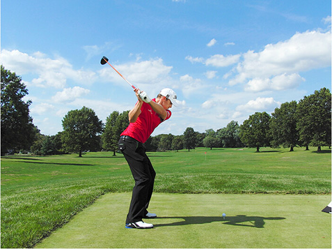 自从2005年进入PGA巡回赛以来,尼克·沃特尼使得最长的球道都显得太短了,职业生涯平均开球距离约为295码。沃特尼身高1.88米,有着现代重炮手的典型身材。但他的力量来源不仅仅是身材。事实上,很多动作同样适用于小个子球手和业余球手。他的强势握杆以及站位和上杆时使双膝保持放松,不过度弯曲,都值得模仿。尼克的建议是:“我会在球杆与腰部同高时尽量使球杆靠后,然后在继续转体的同时,使右膝保持稳固。”