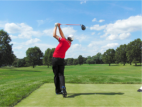 3. 触球前后抬高左肩能够使球杆保持加速,增加击球距离。