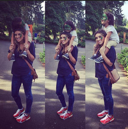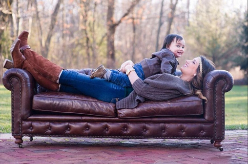 爱丽带儿子出门