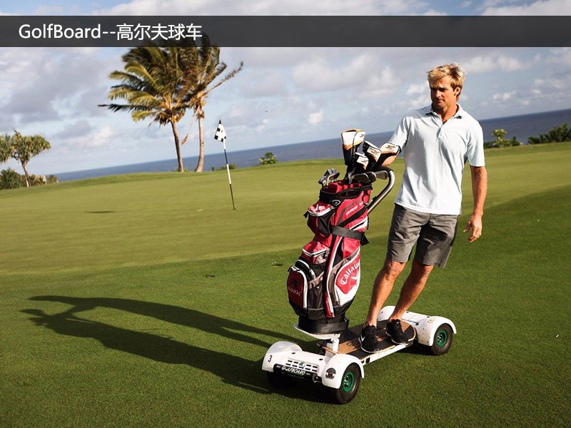 没错!就是Golfboard——高尔夫滑板车。如图所示,它就是装了马达的滑板车,上面有一把手可以倚靠球包。这种滑板车首次露面是在2014年的美巡赛商品展(PGA Merchandise Show)上,那时它被评选为最佳创新产品。而且这种新颖的高球滑板车已经在全美超过100座球场里得到应用,其中就包括了佛罗里达州奥兰多的Dubsdread球场,早在2014年的年底前,高球滑板车已经加入到了该球场的车队中了。Dubsdread球场是由比利-卡斯珀高球公司运营管理的,而该公司的合伙企业是索尔滑板车(Sol Boards),正是球场滑板车的生产厂商。去年年底前,该公司的区域总监曾在Dubsdread球场亲自测试了滑板车。
