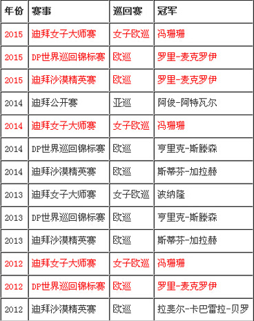 迪拜是小麦与冯珊珊共同的福地,共为两人奉献了7座奖杯
