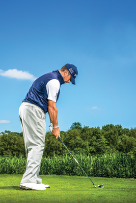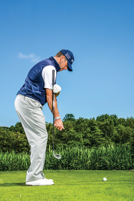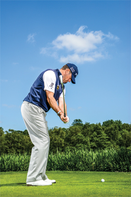 从这个自然的设定动作,你可以设定球杆在一个正确的角度上,杆头趾部会有一点离开地面。这也是为何球杆要量身订製,很重要而且才会适合。