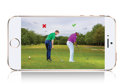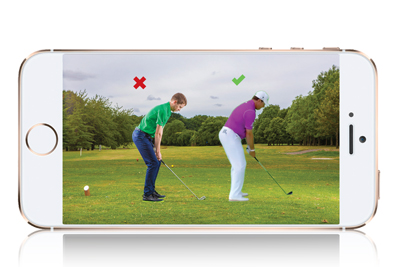 这个软体可以让我比较挥杆、检查动作跟节奏,对于很注重视觉的我,很有吸引力。我看到了把两种挥杆放在一起的好处,看到哪裡可能会出错。送到你面前可以学习的,就不需要过多复杂的技术教导。打高尔夫时常常是,很多时候你觉得已经做到的,不见得就是你现在在做的。这也是这玩意儿有用的地方。你可以选择一支球杆跟打击方向,把我的挥杆放在旁边,好像我真的也站在同一个梯台击球。在接下来的六页内容,我会示範一些挥杆动作,好让你打出又直、又远的球。这些在我的应用软体会讲得更仔细,你还可以跟我的挥杆相比较,以便建立自己的挥杆。