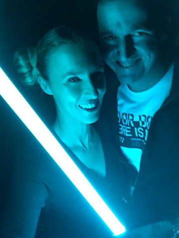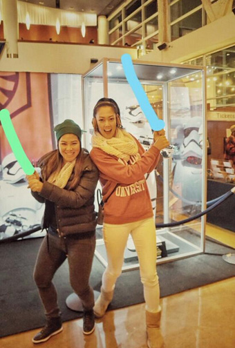 小魔女魏圣美在上映当晚就与朋友到电影院一起看了这部电影,还在社交网站上放上了自己手持”激光剑“的照片,十分应景。