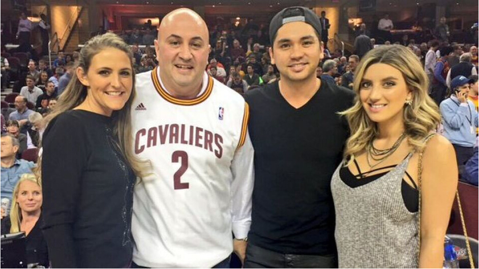 在上周,简森-戴伊和妻子埃莉观看NBA常规赛骑士主场迎战雷霆队的比赛。