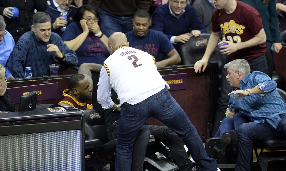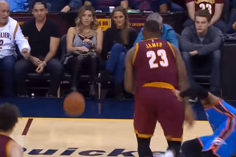 当比赛进行到第四节,两队为胜负进行得一场激烈。突然,詹姆斯来到了中场,并在边线飞身救球,一个身高6尺8寸、体重250磅的庞然大物直接砸到了场边看球的简森-戴伊妻子埃莉,导致其重伤入院进行治疗。简森-戴伊也离开观众席陪同妻子前往医院。