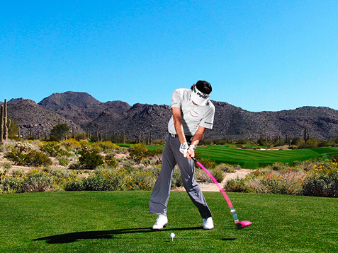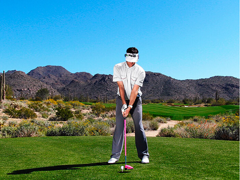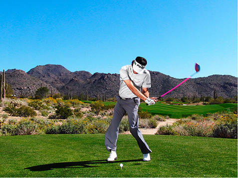 2. 向上击打才能做出远距离击球,确保挥杆弧最低点出现在球后方。